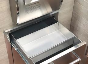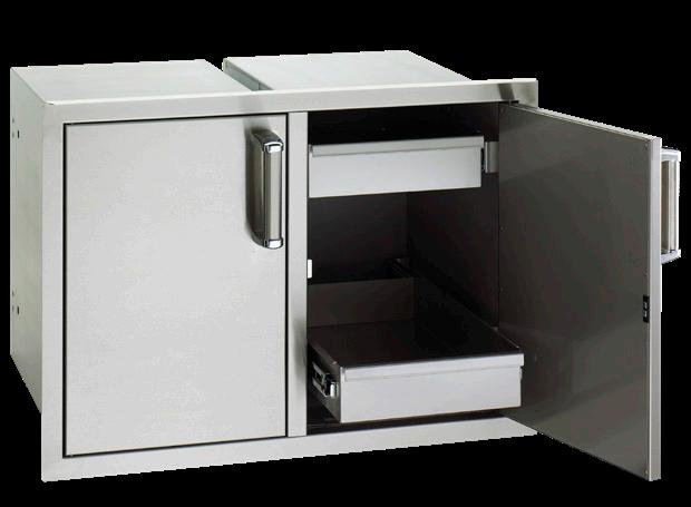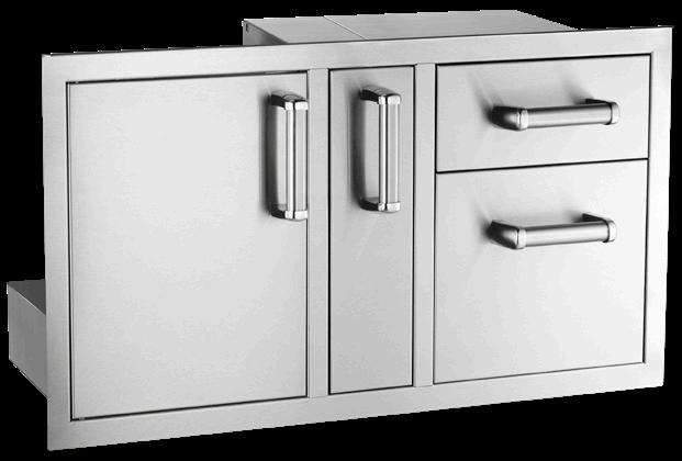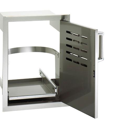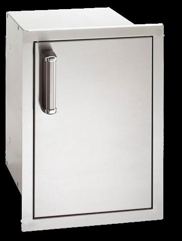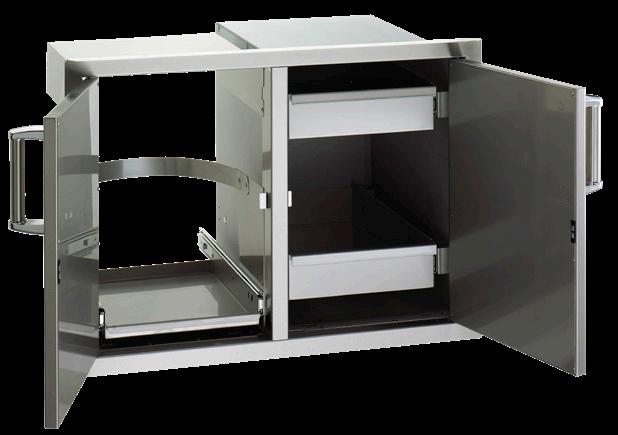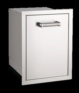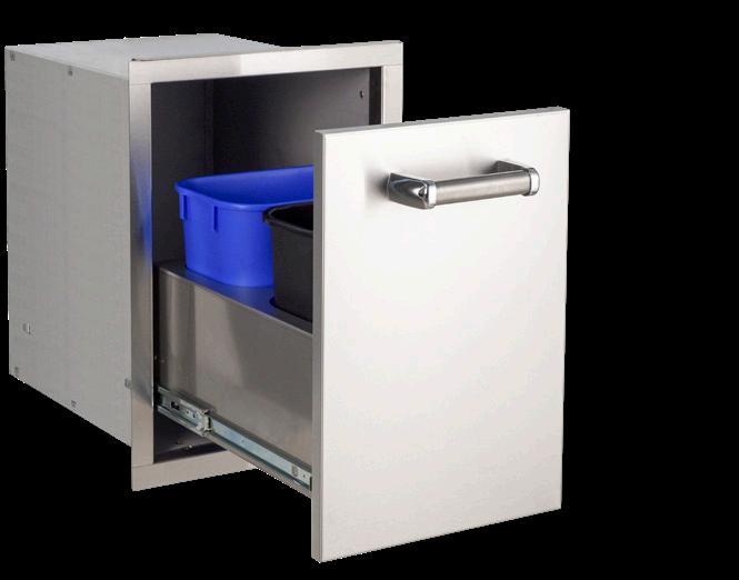 • Allows you to slice and dice on a Fire Magic bamboo cutting board, then sweep debris right into the Fire Magic ® trash container or basic trash can via a deep stainless steel trash chute. Chute measures 37.5cm. Stainless steel lid included.