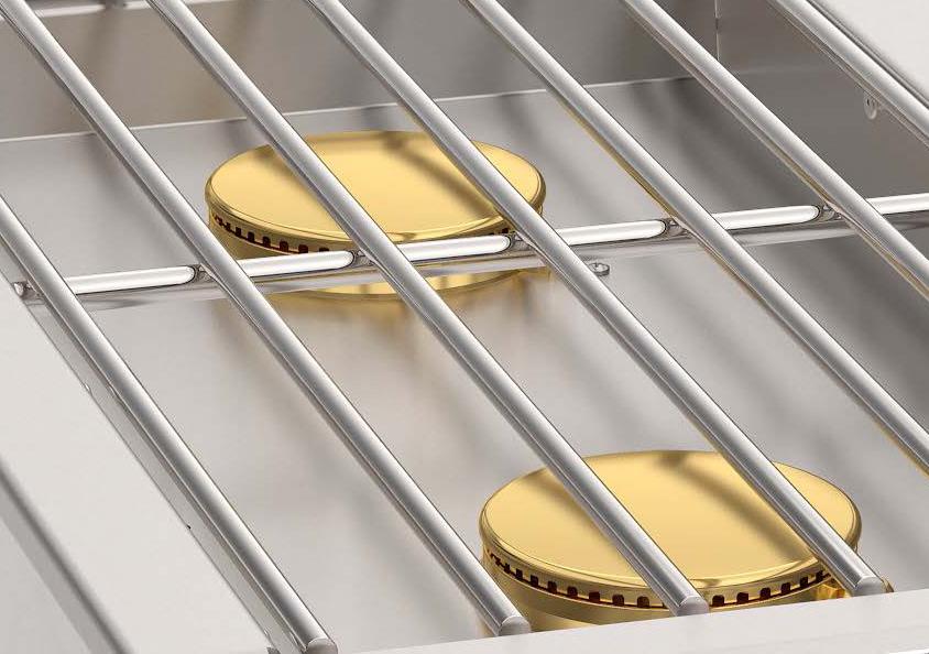 • 6.4mm thick cast stainless steel burners weighing up to 5.4kg each.