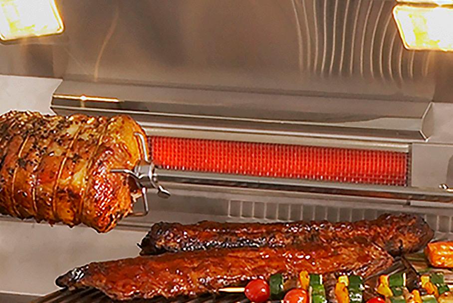 • Recessed high efficiency stainless steel foam rotisserie Quantum Backburner