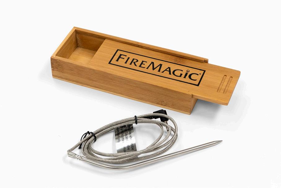 Meat probe included with all Echelon digital grills and features a braided stainless steel sleeve and decorative wood box.