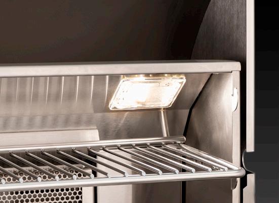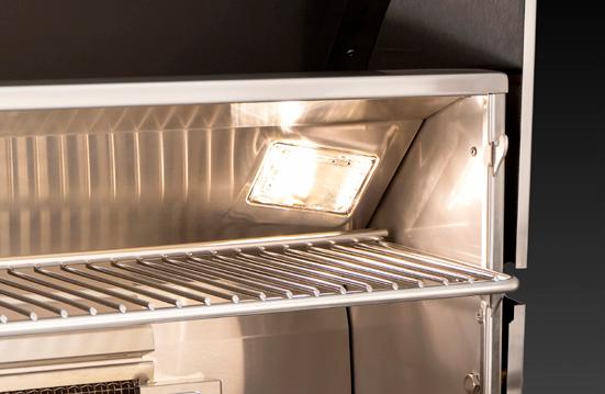• Digital chrome meat & grill thermometer in control panel or angled analog thermometer in lid measuring up to 538 º C