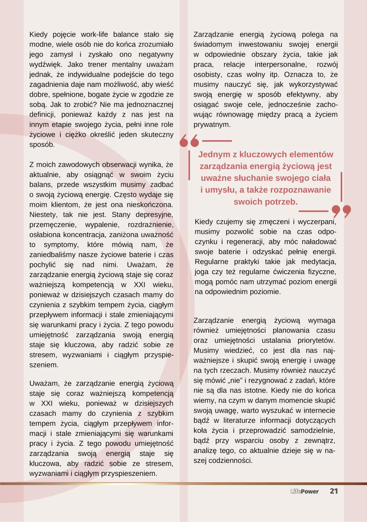 Artykuły zawarte w magazynie opierają się na 8 strefach życia, które wpływają na jego jakość. Mamy nadzieję, że treści publikowane w magazynie dostarczą Ci narzędzi i inspiracji,  aby  wprowadzić  pozytywne  zmiany  w Twoim życiu i aby było ono takie, na jakie zasługujesz.
