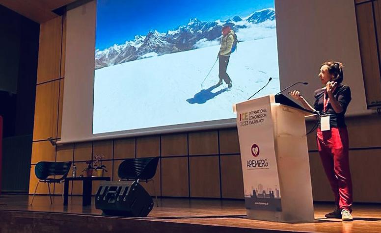 Curiosamente, ao contrário do que a maioria das pessoas habitualmente associa a expedições, grande parte do trabalho que tem não é fruto de acidentes, mas sim causado pelas doenças associadas à altitude. De forma sumária abordou as três mais comuns e para quase todas elas o tratamento passa por fornecer oxigénio e a evacuação. No que diz respeito à evacuação que habitualmente se associa a que seja efetuada por helicóptero, a Dra. Monica efetuou duas ressalvas importantes: a forma como é efetuado o resgate vai sempre depender do local porque nem todas as montanhas permitem acesso por helicóptero, e que ela, enquanto médica da expedição, não acompanha a vítima durante a evacuação uma vez que tem de permanecer onde pode ser necessária para o maior número de pessoas. Sem grandes meios de monitorização ou tratamento diferenciado disponíveis naqueles locais, segundo a mesma, em caso de acidente ou doenças mais graves “...é feito o que se pode, com o se pode...” tendo noção que tem de aceitar que não pode salvar todas as vítimas. No final deixou como reflexão que apesar de trabalhar também como médica num Hospital do Reino Unido, o que a realiza mais profissionalmente e aquilo a que mais dedica o seu tempo é a exercer medicina em expedições de alta altitude e que, pretendeu com a sua partilha de experiências, demonstrar que “...a medicina tem lugar em todo o lado!”.