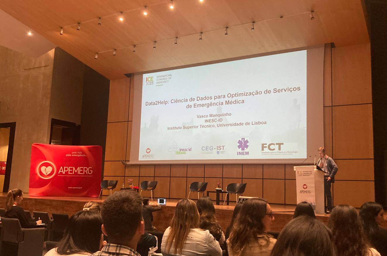 Técnico, Universidade de Lisboa e investigador do INESC-ID, que apresentou o projeto - “DATA2HELP: Ciência de dados para otimização de serviços de emergência médica” –este projeto foi desenvolvido através duma parceria entre INESC-ID, o centro de estudos de gestão do Instituto Superior Técnico e o Instituto Nacional de Emergência Médica (INEM). Com base na análise do histórico de dados das emergências médicas, fornecido pelo INEM, construíram um protótipo de ferramentas que permitirá ao INEM prever picos de emergência médica (num determinado período e local) e assim reorganizar os seus meios. Procuraram desenvolver modelos centrados na otimização operacional, melhorando a eficiência, sem adicionar novos recursos, mas através da relocalização cirúrgica de meios e a otimização estratégica através da revisão da rede, preparando-a para os cenários de “pior-caso” considerando as incertezas dos modelos de previsão, assim como, a abertura e fecho de bases fixas e expansão da frota dos meios do INEM, resultando numa melhor e mais rápida resposta às emergências médicas em Portugal.