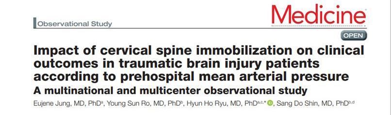 Jung, E., Ro, Y. S., Ryu, H. H., & Shin, S. D. (2023). Impact of cervical spine immobilization on clinical outcomes in traumatic brain injury patients according to prehospital mean arterial pressure: A multinational and multicenter observational study. Medicine, 102(7), e32849. https://doi.org/10.1097/MD.0000000000032849
