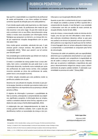 Seja qual for a especialidade ou a experiência do profissional de saúde pré-hospitalar, o seu ritmo cardíaco irá sempre aumentar aquando da ativação para uma saída pediátrica. É sem dúvida aquela saída onde (queiramos ou não) impera o sentimento de medo. Os profissionais têm medo do que irão encontrar e de como reagir. Os pais têm medo do que está a acontecer com os seus filhos, desconhecendo o prognóstico e muitas vezes assustados com informações menos fidedignas que pesquisam na internet e, as crianças têm medo por experienciar situações desagradáveis com as quais não sabem lidar. Estes medos geram ansiedade, sobretudo dos pais. E pais ansiosos geram crianças ansiosas. Nas palavras de Batmanghelidjh (2013), “When your parent´s out of control, your life falls apart!” Esta ansiedade gera condicionantes que afetam em muito as funções dos profissionais de saúde. O medo e a ansiedade da criança podem levar a sinais alterados, bem como a ansiedade dos pais pode levar a uma informação distorcida, resultando numa avaliação por parte dos profissionais de saúde menos correta. Uma avaliação incorreta associada ao stress dos profissionais de saúde, podem levar a uma atuação incorreta.