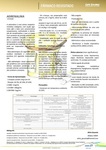 Uptodate: Epinephine (adrenaline): Drug information. Acedido em 09/12/2016. Emergências pediátricas e obstétricas – Manual do Curso de VMER – versão 1.0 - 1ª edição 2012. Emergências Médicas – Manual do Curso de VMER – versão 1.0 - 1ª edição 2012.