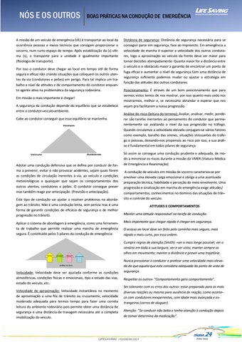 A missão de um veículo de emergência (VE) é transportar ao local da ocorrência pessoas e meios técnicos que consigam proporcionar o socorro, num curto espaço de tempo. Após estabilização da (s) vítima (s), o transporte para a unidade é igualmente importante (fisiologia de transporte). Por isso o condutor deve chegar ao local em tempo útil de forma segura e eficaz não criando situações que coloquem os outros utentes da via (condutores e peões) em perigo. Para tal implica um trabalho a nível de atitudes e de comportamento do condutor enquanto agente ativo na problemática da segurança rodoviária. Em missão o mais importante é chegar! A segurança da condução depende do equilíbrio que se estabelece entre o condutor-veiculo-ambiente. Cabe ao condutor conseguir que esse equilíbrio se mantenha.