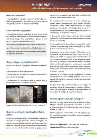 Utilização da Capnografia no ambiente pré-hospitalar O que é a capnografia? A capnografia é um indicador em tempo real da função ventilatória, que possibilita a monitorização contínua e, ainda, a detecção de episódios de depressão respiratória.