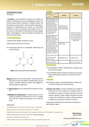 tradas por injecção EV rápida. Vigilância do doente para sinais e sintomas de toxicidade (por exemplo, vómitos persistentes e repetitivos), em que deve ser medido o nível sérico; A depuração de teofilina pode ser diminuída em pacientes com edema pulmonar agudo.