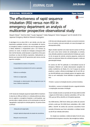 diorespiratória (PCR). Alguns estudos reportam uma maior taxa de sucesso na IOT por ISR, assim como menor número de complicações; no entanto, estas aferições poderão ser potencialmente limitadas por ausência de um grupo de controlo, amostras pequenas, ausência de