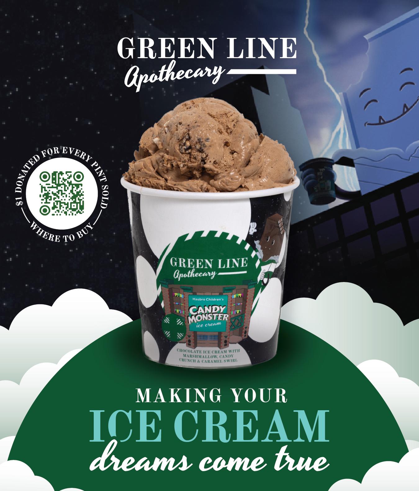Chocolate ice cream infused with scratch-made candy ingredients like chocolate crunch, caramel, and egg-free marshmallow swirl