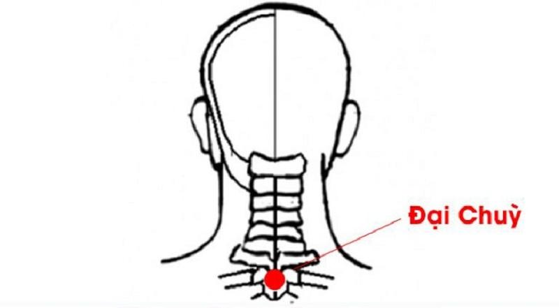 Huyệt Đại Chùy nằm dưới đốt sống cổ thứ 7(phần nhô cao nổi bật nhất sau cổ). Khi