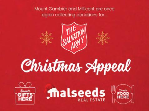 past five years. Mount Gambier Central are proud to continue to play a significant role in supporting the fundraising for the Mount Gambier Community Mayor’s Christmas Appeal and helping raise awareness of the appeal over the past 11 years. See inside for full story MOUNT GAMBIER / SOUTH EAST AXIS Employment: 1/35 James Street MOUNT GAMBIER SA 5290 p: 1800 907 407 e: mountgambier@caei.com.au Outreach Offices: Millicent, Naracoorte, Bordertown, Kingston, Penola www.caei.com.au we includewe achievewe care