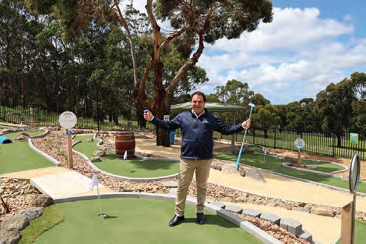 Tony Pasin has teed off at the Blue Lake Putt Putt to celebrate the completion and opening of the new Limestone Coast attraction.