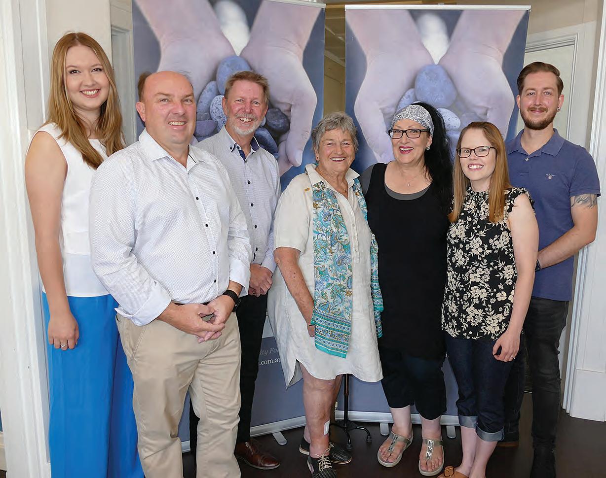 Illustrator Tahlee Chant; finance manager Jason Seidel, Stand Like Stone Foundation CEO Roger Babolka, Dr Sue Charlton, author Rosangela Crispino and creative team Lauren Booth & Leigh Howlett.