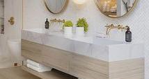 Install sconces at 66" AFF and 6" from side wall and cabinet side