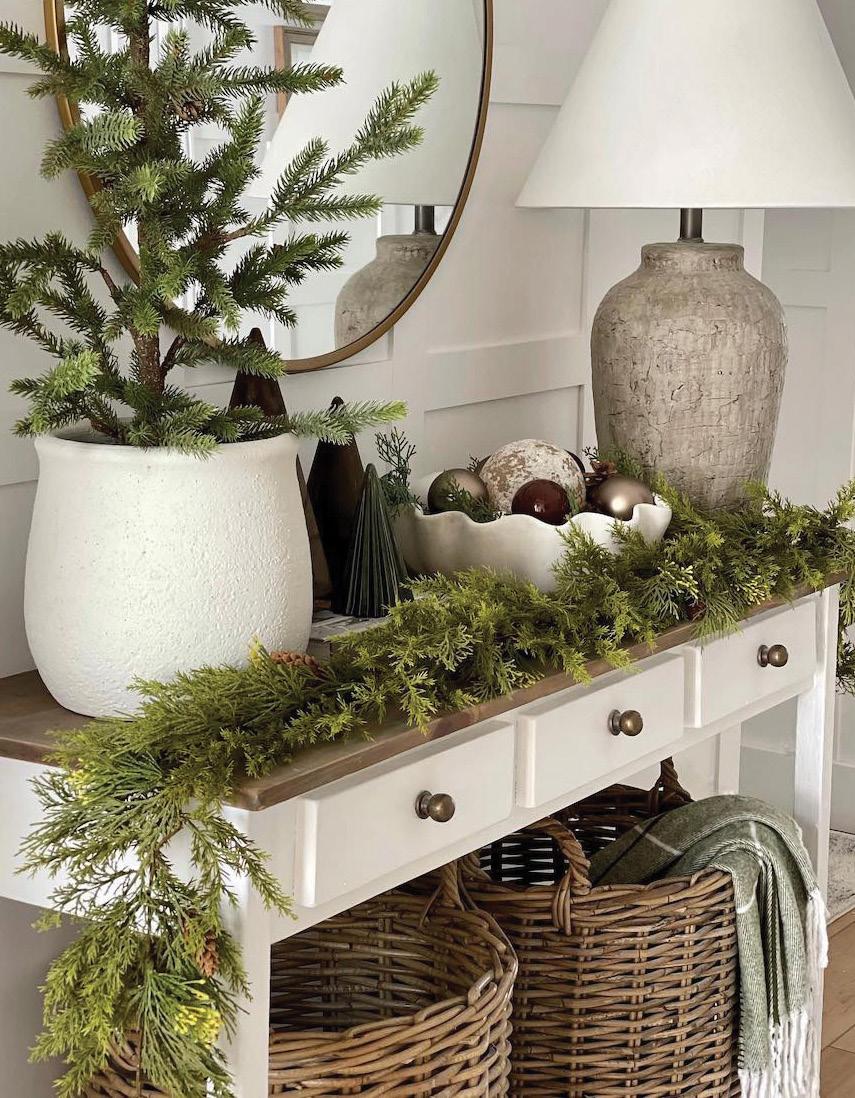 Indoor plants are essential for refreshing the home in winter. Consider low-maintenance plants like snake plants or seasonal greenery like holly or pine.