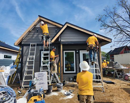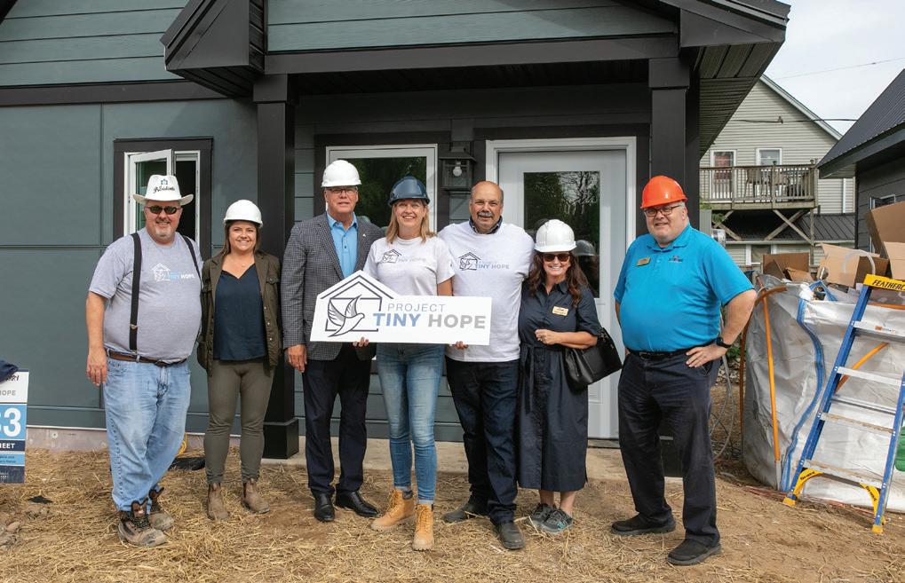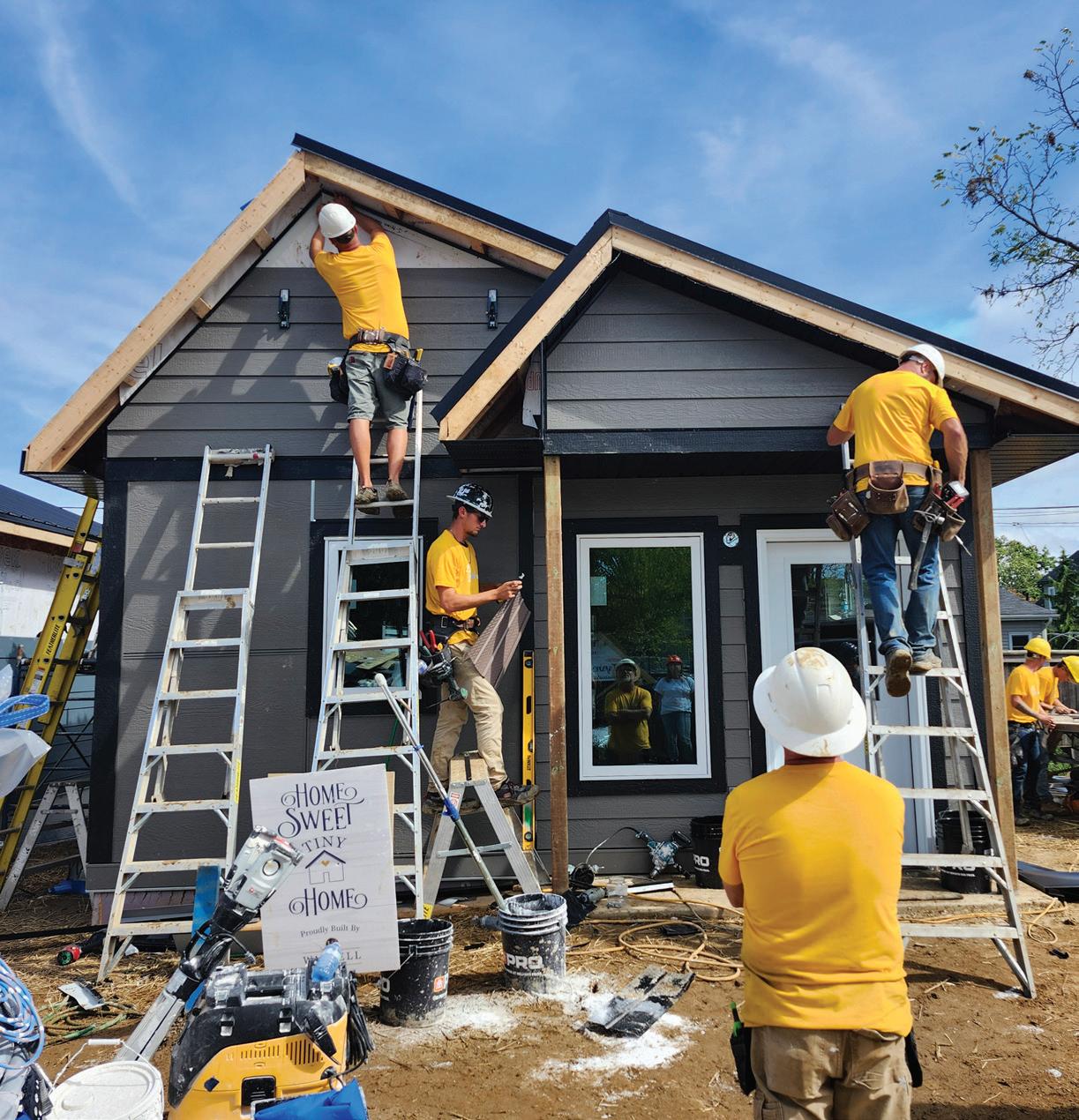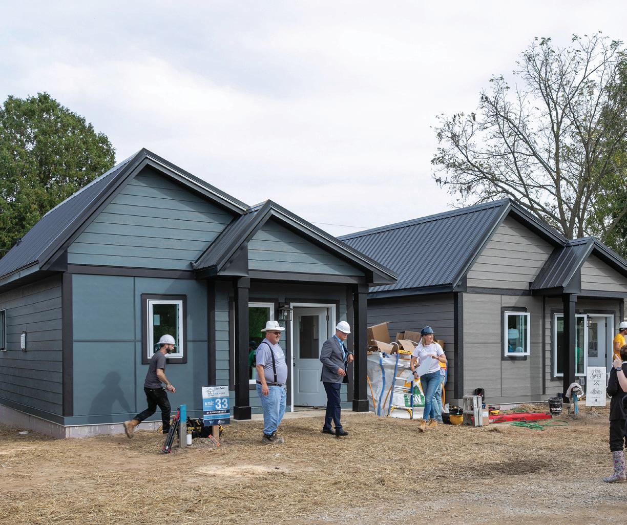 In an extraordinary show of collaboration and volunteerism, crews from Doug Tarry Homes were joined by those from other local builders for a “blitz build” of the first eight tiny homes in late September. They included Wastell Homes, Collier Homes, Winmar Construction with Gilbert Contracting, MP Custom Homes, DHP Homes and Woodfield Design & Build. Eight of the new