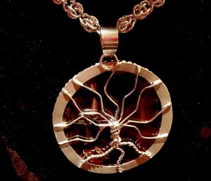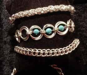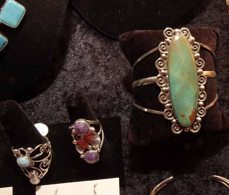 filigree, a very whimsical kind of lacey jewelry. I like working with the big stones and some more traditional New Mexican jewelry, but I put my own twist on it. I get a lot of my inspiration and ideas from both our Celtic and Norse heritage and then mix it in with that southwest flair for a really fun style. My husband does the chain mail and the leather work, and he also does our big stone stuff. He makes sure that we have ring sizes going all the way up to 15 so that both men and women can shop with us and find pieces that will fit their style and sizing”.