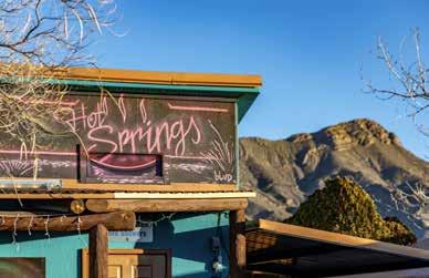 centuries—from Pueblo and Apache peoples to Spanish settlers, who called it Ojo Caliente de Las Palomas. By the 1880s, cowboys were soaking in the first adobe bathhouse, and by the 1920s, it had become a thriving spa destination, then known as Hot Springs. Today, called “T or C” by locals, this desert town of just 6,000 residents remains small in size but big in character, where healing traditions and reinvention are benchmarks. “People come here and love how unique it is,” says Gina Kelley, Executive Director of the Geronimo Trail Scenic Byway Visitor Center, who relocated two decades ago, “for the hot springs and affordable real estate,” and has watched the small desert town evolve while holding fast to its roots.