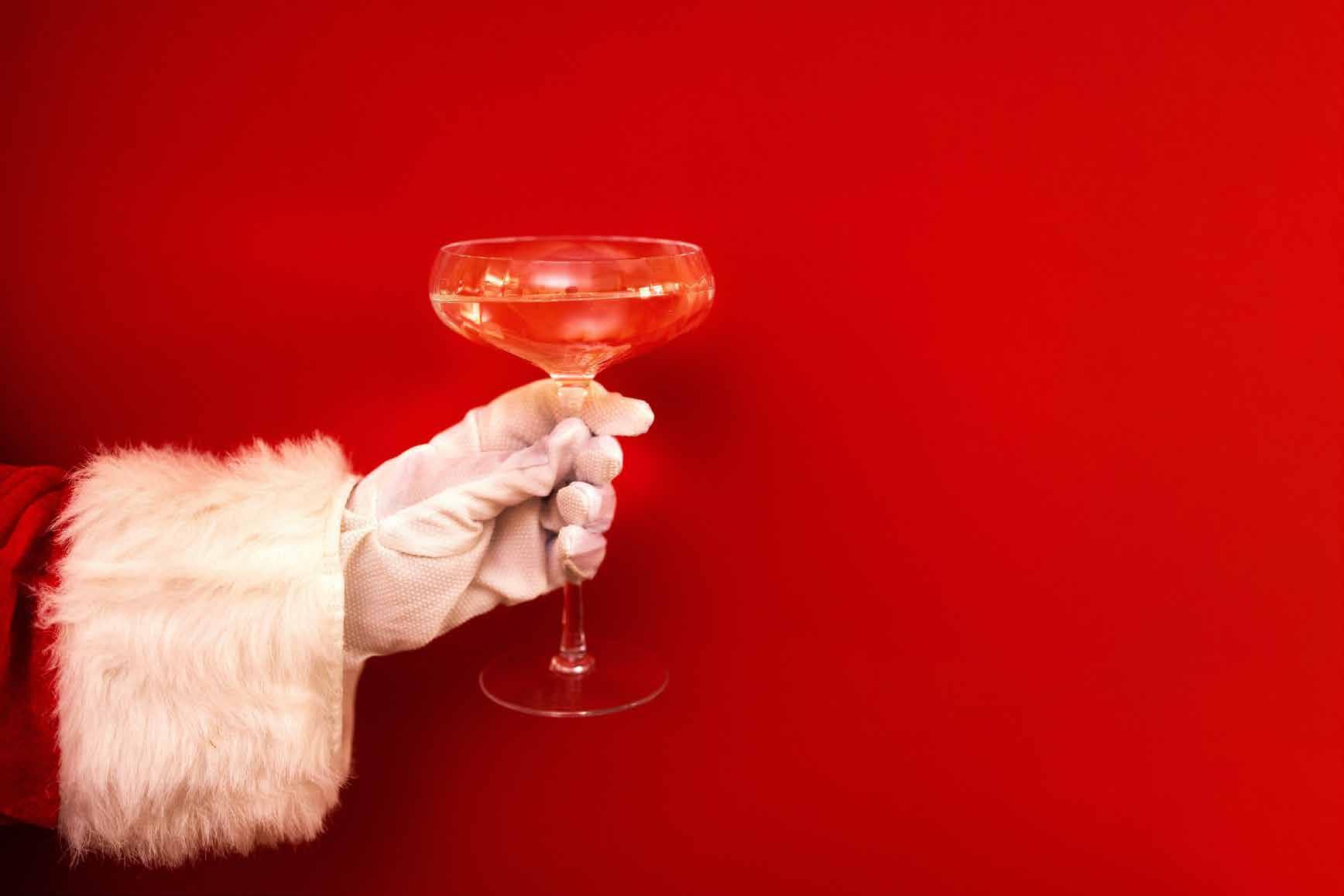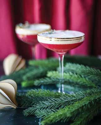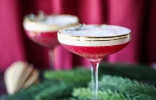 A bright, elegant cocktail with a foamy top and a hint of holiday spirit.