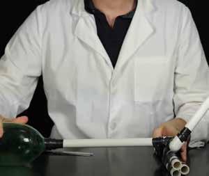 Step 4: Attach a one foot section of ½” PVC pipe to the other end of the ½” PVC elbows and use electrical tape to secure it in place. This is where you will place your rocket for launching.