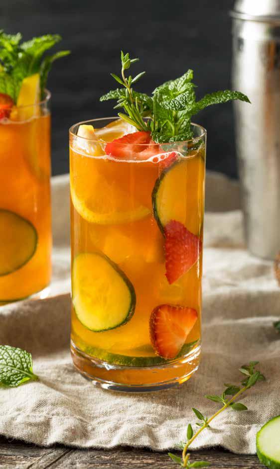 The Pimm's Cup is a classic English gin cocktail. This refreshing drink provides a sip and a snack with a generous amount of fruit in each serving. Use ginger beer or ginger ale if you want that spicy ginger taste. Muddle jalapeño in lemon juice and add to your pitcher to add some kick. Add any seasonal fruits to your pitcher - the more the merrier!