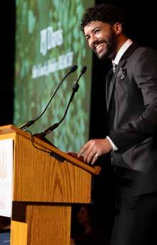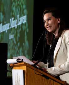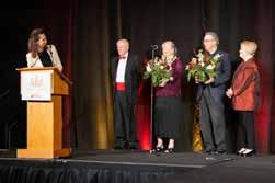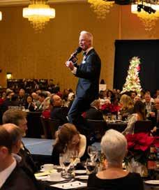 15: John Curley joins as the auctioneer for the 10th annual Festival of Trees Gala. 16: Honorary Co-Chairs Gary and Jan King and Betty and Kemper Freeman were recognized and thanked onstage. 17: Wonderful stories about how Love Never Fails were told throughout the night. 18: Guests during the reception gathered together to capture great photos at the photo booth! 19: This beautiful decorated tree is one of eight that surrounded the ballroom during the live auction. 20: Guests joyfully bidding on live auction items. 21: Monique Ming Lavan returns as the Emcee for the 10th annual Festival of Trees Gala.