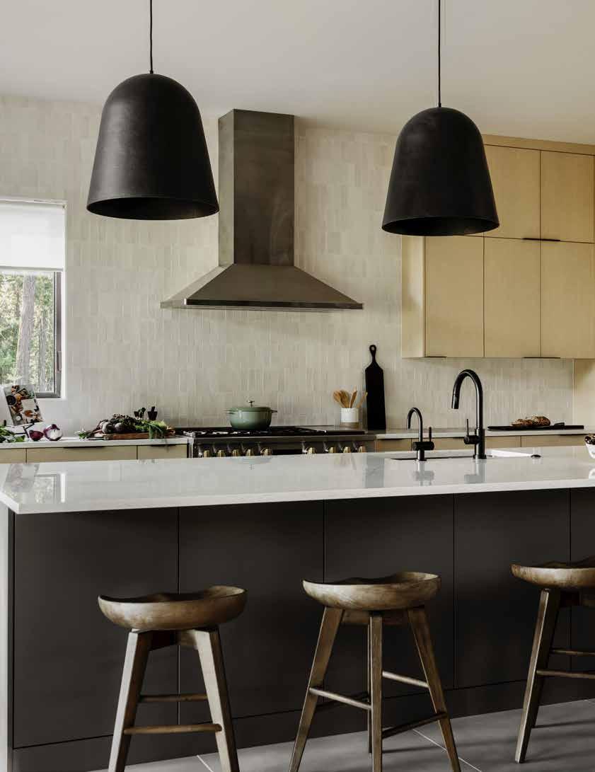At the heart of Nuance’s operations is its 3,000-square-foot showroom, Washington’s only luxury, sustainable design center. Established in 2020, the showroom showcases a curated selection of custom furniture, cabinetry, and ecofriendly materials. Designed as a one-stop resource, it streamlines the design process, cutting both decision fatigue and time in half for clients. “By collaborating with homeowners, builders, and architects, we want to shape the future of home design—from foundation to furnishings,” Sarah explains. This vision is supported by global sourcing, infusing each design with international influence while remaining committed to sustainability and quality.