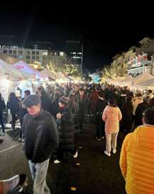 1: The third annual Bellevue NYE Night Market welcomed over 50 vendors and 9,000 attendees. 2: The drinks were hosted by Bellevue LifeSpring, featuring sips from Browne Family Cellars and Happy Camper. 3: Food trucks served up their finest selections for the hungry crowd, from Impeckable Chicken to Famous Dave’s BBQ. 4: Elaina Morris, Bellevue Mayor Lynne Robinson, Diane Carlson, Lindsay Marshall, and Keri Pravitz together at the Visit Bellevue photo opp. 5: KOSHAY founder, Richa Rai, showcases luxury tea blends crafted with nature’s finest botanicals. 6: A variety of buskers performed music street-side for attendees to enjoy and interact with. 7: From 103rd to 101st Ave SE, Main Street was full of bustling local life and vibrant culture at the NYE Night Market.