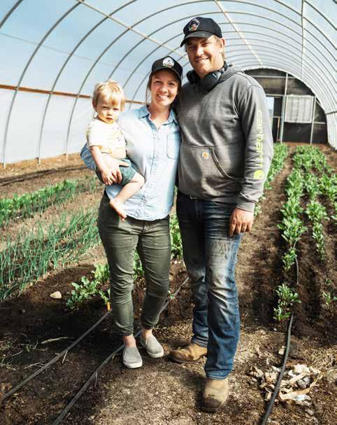 Janelle and Frank Maricle of Well Rooted Farms with their son. This farm grows a variety of vegetables all summer and meat and eggs throughout the year.
