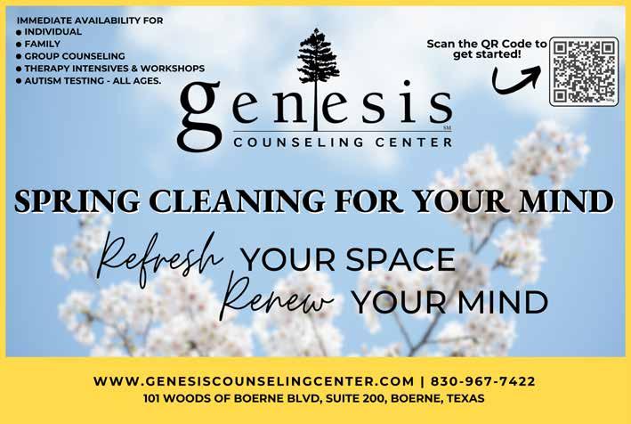 The city’s annual Easter extravaganza is coming up! Boerne Parks and Recreation brings you and your family all the exciting spring fun—including an egg hunt in the park! Bring the whole family out for a day of games, candy, and an appearance from the Easter Bunny. The event is free for the whole family, and you can learn more at ci.boerne. tx.us/631/Easter-Egg-Hunt