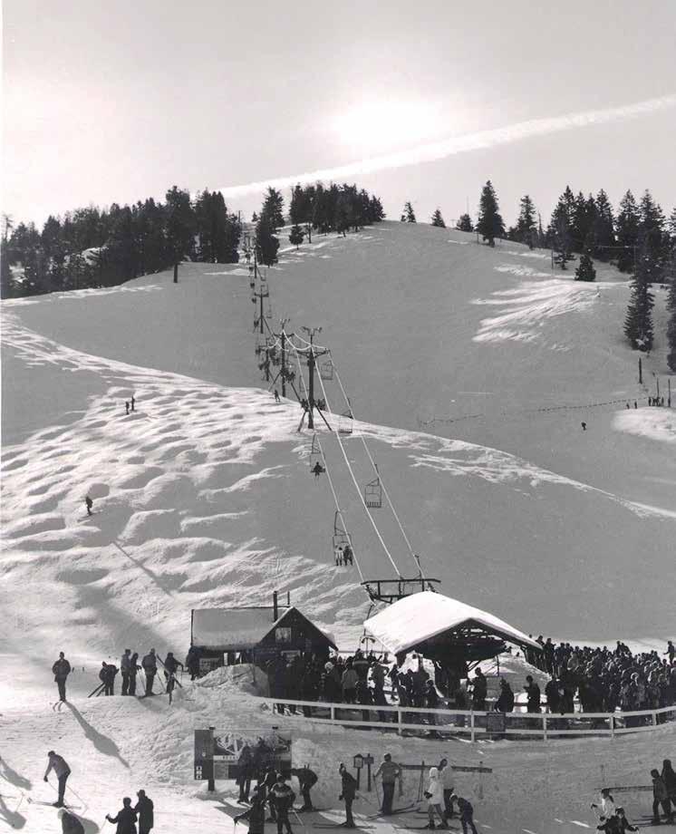 They recruited Alf Engen, one of America’s most decorated ski jumpers and the father of the American powder technique, to find a site for the ski area. Engen and his team explored by skiing 150 miles, on three different trips, looking for the ideal site. When Engen saw Shafer Butte he said, “This is where you want your ski area. It has wonderful snow, great runs along the ridgeline, it has the most dependable snow, and it lasts long in the season.”