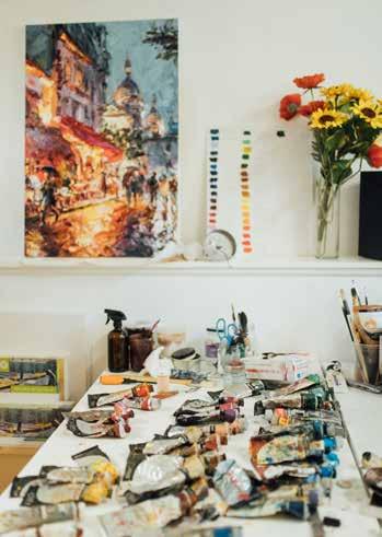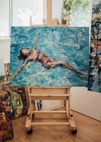Lyudmila is known for her impressionistic paintings of dancers, city scenes and water scenes, all crafted with richly hued oil paints and a palette knife.