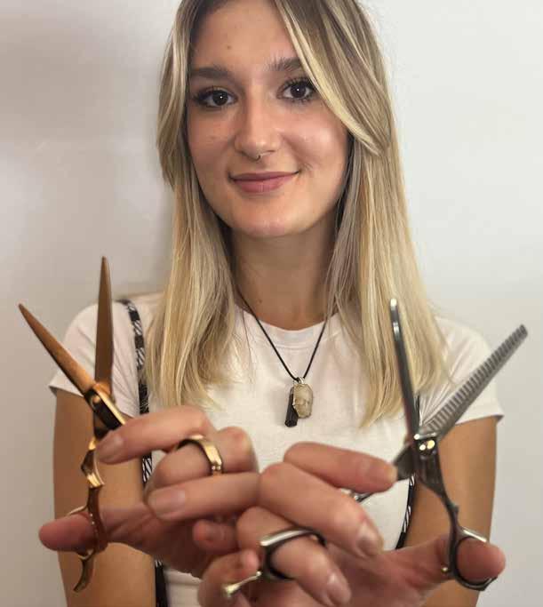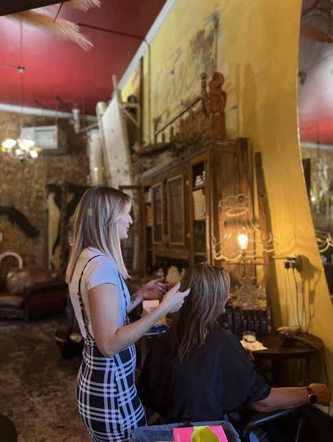 hair. The cut accentuates those luscious locks and brings life to their curls. Shadow roots and balayages are perfect for blonde clients who love something that’s more low maintenance. The shadow root helps blend down the natural root to help soften the demarcation line from previous highlights. Balayage mixed with a shadow root helps blend and make the grow-out process nicer if one would like to grow out their natural hair. Balayage is a hand painting technique for highlights that cre ates a graduated natural look. The growout is usually four to six months to a year depending on personal maintenance and style. Purple shampoo and conditioner are great tools to help keep blondes vibrant in between appointments. Depending on how many times someone washes their hair, the treatment should be used at least once a week. Think of it as a self-toner at home. Men’s styles have also been evolv ing over these past few years. Classic fades have been changing into longer looks. Have you seen a mullet or two wandering around? The 80’s are back and long hair is in–playing around more with texture to create movement. Time to switch out that 3-in-1 and use conditioner to keep your flowing tresses moisturized. When coming into the salon, it can be intimidating and challenging not knowing the terminology. Never be afraid to ask your stylist what something means. A good stylist educates and gives advice on what they think would complement your features. With so many great styles coming back into vogue, options for self-expression abound.