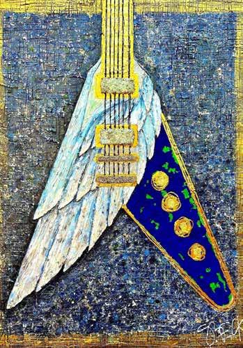 eclectic group of musicians, S Beck was destined to find her own abstract style of painting the musical instruments that surrounded her.