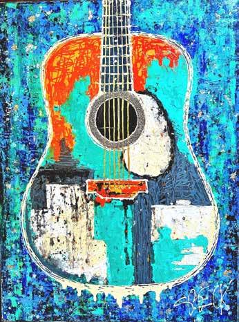 Over the past three to five years, her paintings have focused primarily on guitars and piano keys. When people view these paintings, she wants them to be taken back to a live event, a concert they attended, or to a time in their lives when music helped them overcome challenges and motivated them to persevere.