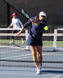 1: Co-chair Mark Freeman at the 4th Annual FACT for Phase One Pickleball Social, held at Mulholland Tennis Club. 2: Brooke Lande and Jodi Meadow with Phase One founders Alberto and Stacy Valner. 3: Joy Liefeld playing at the event, which raised more than $275,000 to help fund Phase 1 and II cancer clinical trials in 2025. 4: Marc and Deanne Lebowitz, Lois Jacobs and Jeremy Lebowitz. 5: Josephine Atluri of Mindful Wellbeing Pathways with Angie Banicki at an evening she hosted for Dr. Karen Tang, author of It’s Not Hysteria: Everything You Need to Know About Your Reproductive Health (But Were Never Told). 6: The festive display. 7: Dr. Tang signing copies of her book.