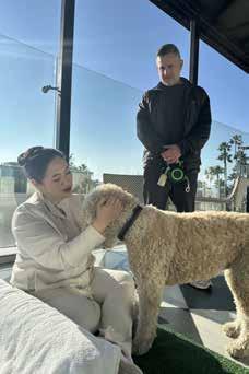 1: Comfy Dental Studio in Beverly Hills hosted a soothing sound bath therapy in support of the Fire Relief Fund established by the Beverly Hills Rotary. 2: Sound healer Jasmine Amirah, Comfy Dental Studio founder Dr. Sara Sabokpey and Maria Shapley of Figaro & Co., which provided specialty crafted chocolates. 3: Lara Berthoin. 4: Chelsie Scheitler. 5: Regent Santa Monica Beach held a “Yappy Hour” gathering for evacuees and their furry friends, featuring pup massages courtesy of the hotel’s Guerlain Wellness spa. 6: The event was held on the hotel’s Seascape Terrace in partnership with Healthy Spot, with “puptails,” a treat bar and goodie bags. 7: An adorable doggie and owner.