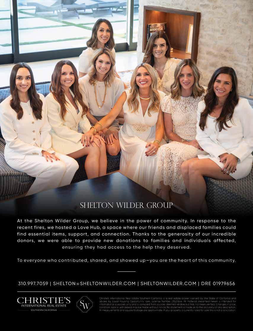 Yet in the wake of so much hardship, there are glimmers of hope. I tried to capture a bit of that in this issue, which ironically was originally supposed to be devoted to the Home. It has been so inspiring to see the way the community has rallied together, and the City Scene section is devoted to these efforts—from donation drives to delivering food to raising funds and even providing a bit of pampering and care. We also check in with the owners of beloved Palisades salon Canale-Martinez, and speak with members of the local design community about projects they have lost and their thoughts and hopes for how to rebuild. Lastly, there is a heartbreakingly beautiful photo essay by Rustic Canyon resident Bob Bronstein, who drove through the Palisades in the days following the fire, paired with a poignant poem from Palisadian Dr. Zelana Montminy, whose insightful social media posts have been a bright light during these challenging times.