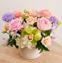 Pastel flower arrangements are among the most requested color palette for Mother’s Day. This year, we’ve elevated the classic soft design style by offering the exquisite Pink O’Hara garden roses. Known for their sumptuous, layered petals, delightful fragrance and impressive longevity, these premium blooms add a touch of luxury to this design. Also featured are ranunculus, lavender scabiosa, clematis, premium white hydrangea and a spectacular green cymbidium orchid.