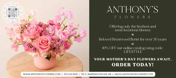 110 S. Barrington Ave. #B; 310-476-9610; anthonysflowers.com. Use code “Lifestyle” for 10% of Mother’s Day orders online.