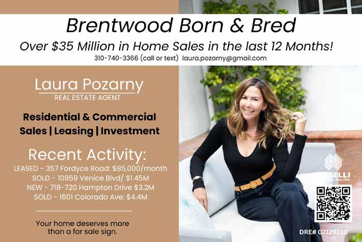 As a lifelong Angeleno and founder of Teryl Designs Landscaping, Brentwood resident Teryl Ciarlo has spent over twenty years transforming outdoor areas into personal retreats. Known for her fresh, clean and well-balanced aesthetic, Ciarlo creates stunning outdoor spaces perfect for elegant entertaining and relaxing living, whether looking to revamp your yard or create something new. She is dedicated to enhancing gardens throughout the westside and has been working tirelessly to help clients in the Palisades rebuild after devastating loss. 310-463-7863; teryldesigns.com