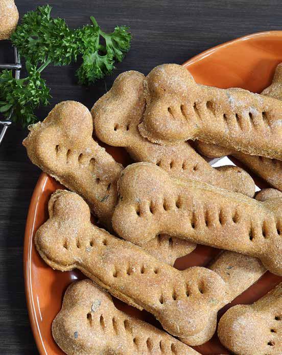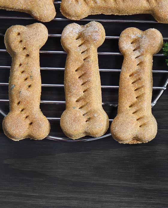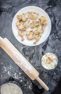 • • On a lightly floured surface, roll out the dough about ½-inch thick and use a cookie cutter to make fun shapes. The treats barely spread and rise, so get creative with your shapes.