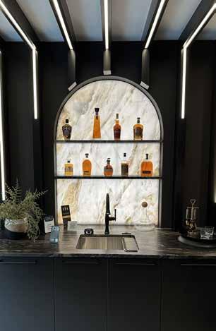 Plutus moved to a new location in May 2024, which is designed for clients to walk around and spend a few hours finalizing their selections. The space offers some fun uses for marble beyond countertops, like marble cornhole boards and a soon-to-open natural stone shuffleboard. In addition, a bourbon and wine bar soon will be up and running for clients who would like to sip while they stroll the showroom.