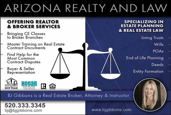 BJ Gibbons is a Tucson real estate broker, attorney, and instructor. In addition to dozens of other subjects, she teaches continuing education classes to realtors through the Hogan School of Real Estate, the Arizona School of Real Estate, and business courses on ‘Real Estate in Estate Planning: Is Your House in Order?’ And on ’10 Ways to Take Title to Real Estate in Arizona’, and another on ‘The Truth About Estate Planning in Real Estate.'