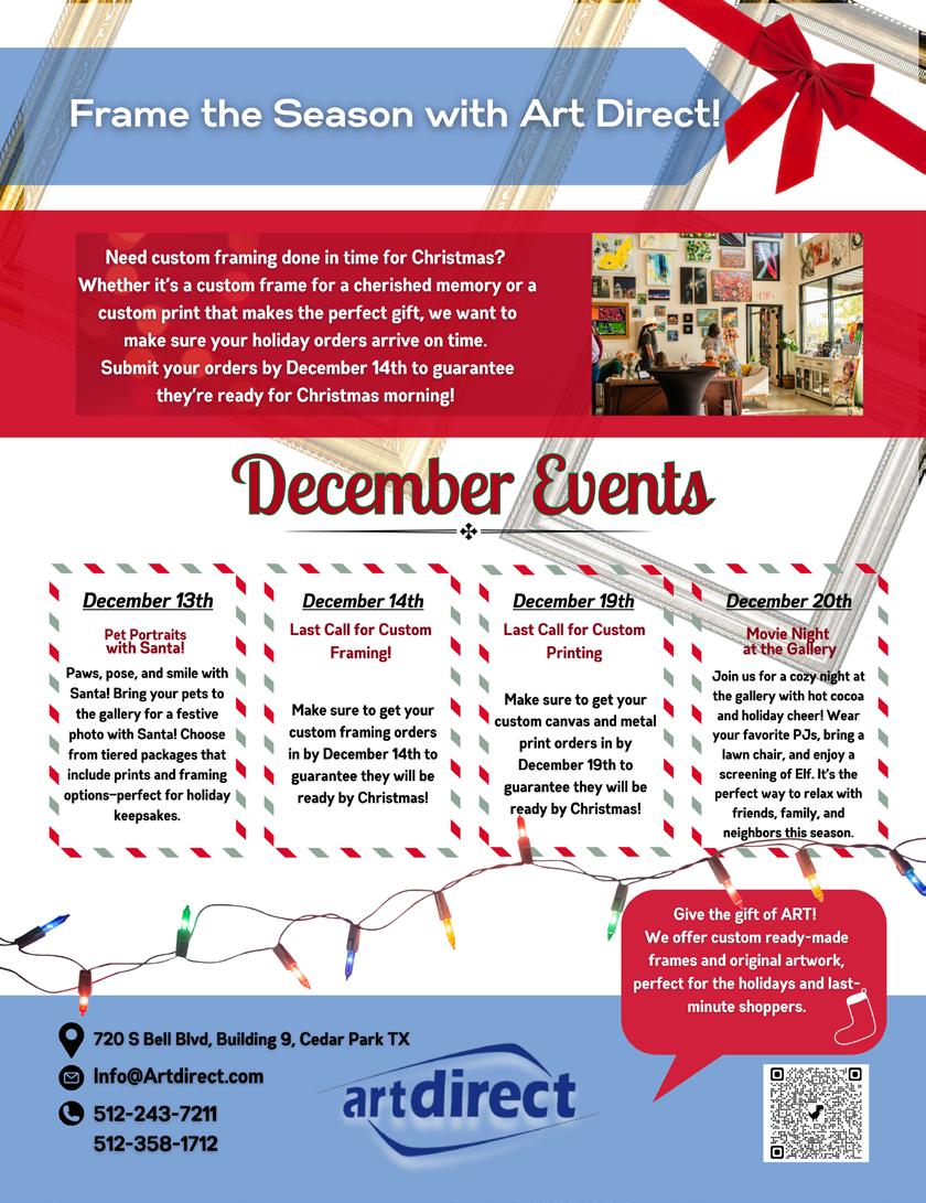 For more than 20 years, longtime Cedar Park resident George Prichard has been evolving his creative passions, starting with his art degree and career in art sales. It wasn’t until the rise of the internet that he decided to launch his own business right out of his garage. What began with early success selling on platforms like eBay and Amazon has grown into Art Direct, a thriving fine art print, custom framing, and art gallery in Cedar Park.