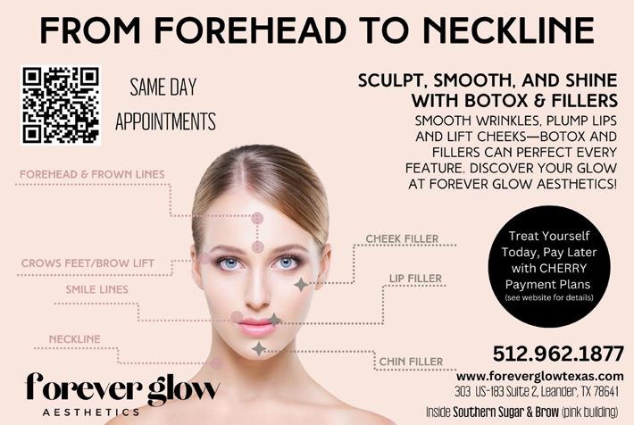 As we push toward the end of the year, Forever Glow Aesthetics is expanding its offerings to include weight loss injections, wellness shots, IV wellness, and lipodissolve. To make these services more accessible, owner Danielle Bayer has also recently introduced financing options, ensuring affordability for all clients. No matter your beauty goals, Forever Glow has the solution. Check the website for their new location and take the next step toward a more radiant you! foreverglowtexas.com