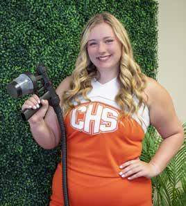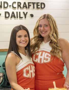 BUFF CITY SOAP 308 W Walnut St, Celina Stay fresh and clean before and after the game with the help of Buff City Soap! Avery and Gracie had fun making their custom Bobcat orange epsom salt for those after game soaks. Choose from an amazing array of scented laundry detergent and dryer balls to keep your game gear looking and smelling clean. BY HOLLY FARROW YOUR GAME FACE ON WITH CHS SENIOR VARSITY CHEER Style